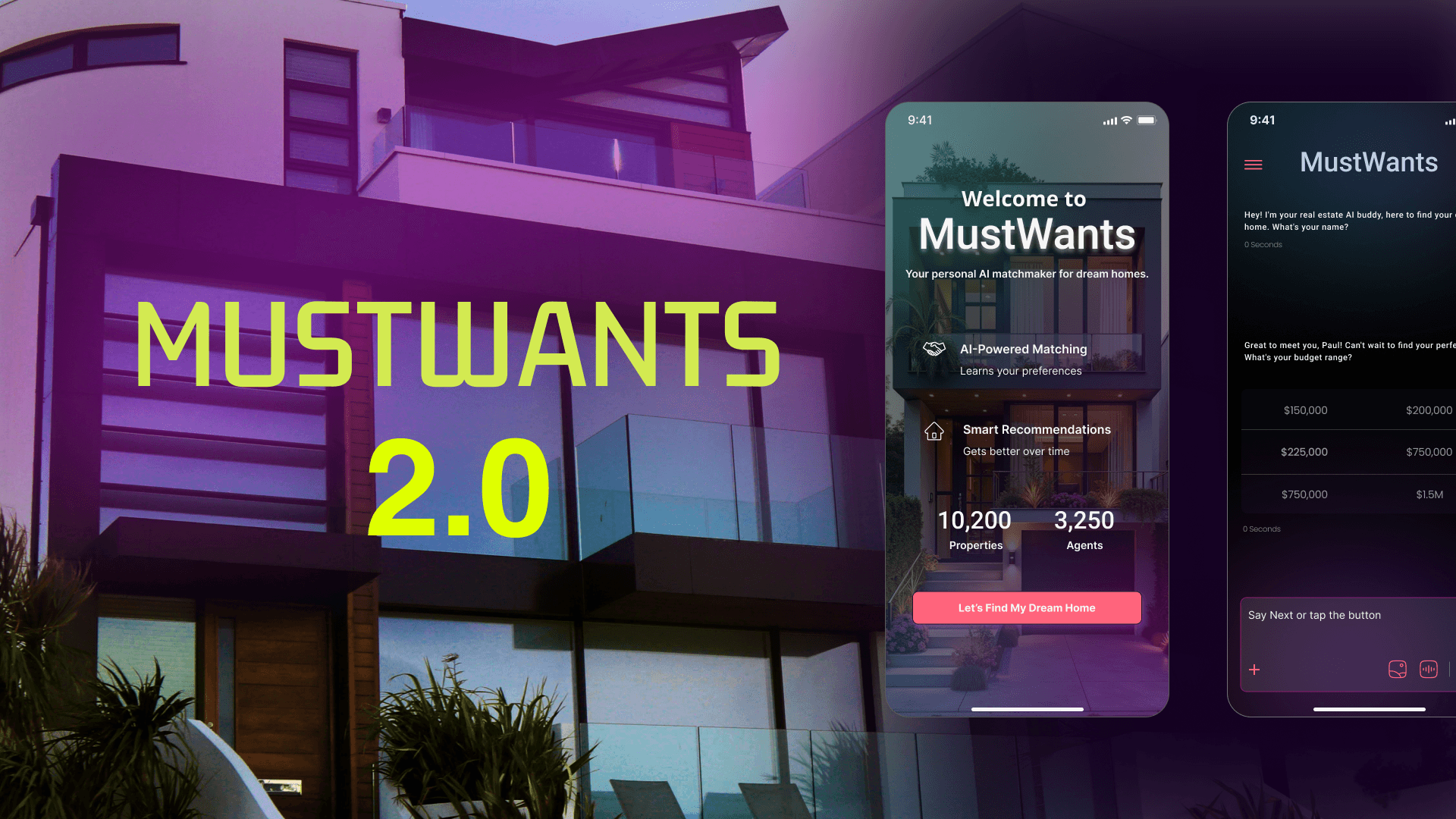 Must Wants reimagines the home-buying journey by addressing the emotional disconnect of traditional listings, where "on-paper" specs often fail to match the reality of living in a space. To solve this, I designed an AI-driven platform that introduces a unique "dating" mechanic, allowing users to simulate lifestyle scenarios like hosting dinner or a morning routine—to test compatibility before ever stepping foot inside. Leveraging a hybrid workflow with Figma and Cursor for rapid prototyping, the resulting interface transforms a typically transactional search into an engaging narrative, ultimately reducing wasted tours for agents while empowering buyers to make data-backed, emotionally intelligent decisions.